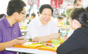 九月十四日,省委书记梁保华来到东南大学九龙校区桃园学生食堂,和大学生们共进午餐并与他们亲切交谈。 本报记者 于先云摄