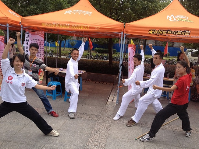 据悉,梅花桩拳武术协会去年刚成立,虽然是年轻社团,不过追溯起来,却师从武术大家。“当时,有一位师兄在电视上看到山东大学燕子杰教授讲述梅花桩拳,特意赶到山东去拜访请教。回校后,就申请成立了梅花桩拳协会。”东大经管院端和阳同学介绍说。