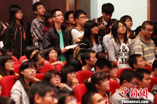 整个报告厅的过道都站满了学生,大家聚精会神的听着,时不时的做着笔记。 泱波 摄