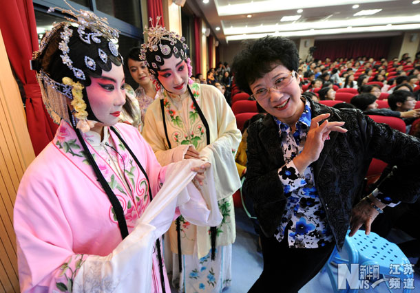 黄孝慈是东南大学兼职教授,给学生讲授中国传统文化课程。为了在大学生中普及传统戏剧,让爱好戏曲的同学有学戏、演戏的机会,她在学校支持下办起了这个学生剧社,不仅亲自担任指导老师,还将邀请各剧种更多的戏曲名家来为学生作指导。新华社记者 孙参 摄