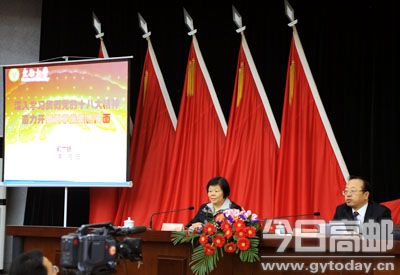 本报讯 7日上午,党的十八大代表、省委宣讲团成员、东南大学党委书记郭广银教授来邮作党的十八大精神辅导报告。市委书记韩方主持报告会并就学习贯彻落实十八大精神提要求,方桂林、倪文才、金春林等在邮的市四套班子领导出席报告会。