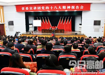 “请问郭教授,高邮作为历史文化名城,如何进一步学习贯彻党的十八大精神建设文化强市?”“十八大报告明确提出‘努力办好人民满意的教育’,在基层如何实现教育均衡发展?”针对部分党员干部的提问,郭广银教授一一答道:“高邮是座历史文化名城,文化底蕴十分深厚,要按照十八大精神的指引,更好地发挥文化方面的优势,把高邮已有的深厚的文化底蕴弘扬好、彰显好,同时还要根据高邮广大人民群众对丰富精神文化生活的追求、需求,更好地推进文化大繁荣大发展,更好地建设美丽高邮。”“教育是民族振兴的基石,教育均衡发展十分重要,这就要求我们要多关注边远地区、欠发达地区的孩子,进一步整合资源,让更多的孩子能够分享更多的教育资源。同时要不断加大对教育的投入,不断加强教师队伍建设,提高教师的师德水平和业务水平,增强教师教书育人的责任感和荣誉感,让每一个孩子都成为有用之才。”