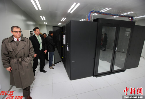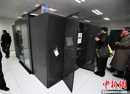 12月10日,由南京东南大学与IBM公司联合建立的东南大学-IBM云计算联合研究中心成立。图为嘉宾参观云计算中心。中新社发 泱波 摄