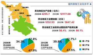 得益于新型工业化的加速,产业项目集聚度的提升,2006年以来,苏北发展进入快车道,主要经济指标增速连续七年高于全省和全国平均水平,成为我省重要的经济增长极。