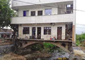 这幢楼房建于1991年,两层高、建筑面积约160平方米,房主一家住了20多年。当年,房主见有座桥废弃不用了,就决定在桥上盖楼房,这样不用占用宅基地。因为地理位置好,位于三岔路口,来往人多,房主还利用马路边的房间开了个小食品店。