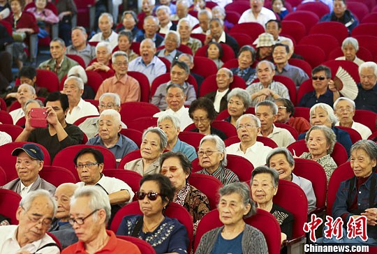 10月11日,老寿星们参加祝寿大会。中新社发 泱波 摄