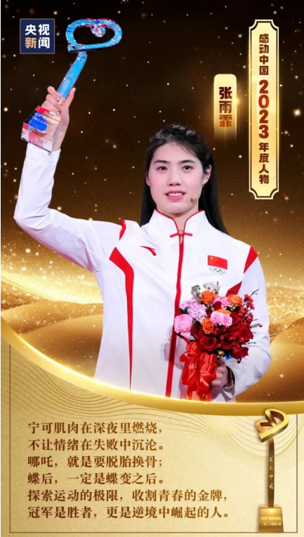 张雨霏表示:“国运兴则体育兴,国家强则体育强。作为奥运健儿的一份子,‘止于至善’的校训精神一直激励着我更快、更高、更强、更团结。”