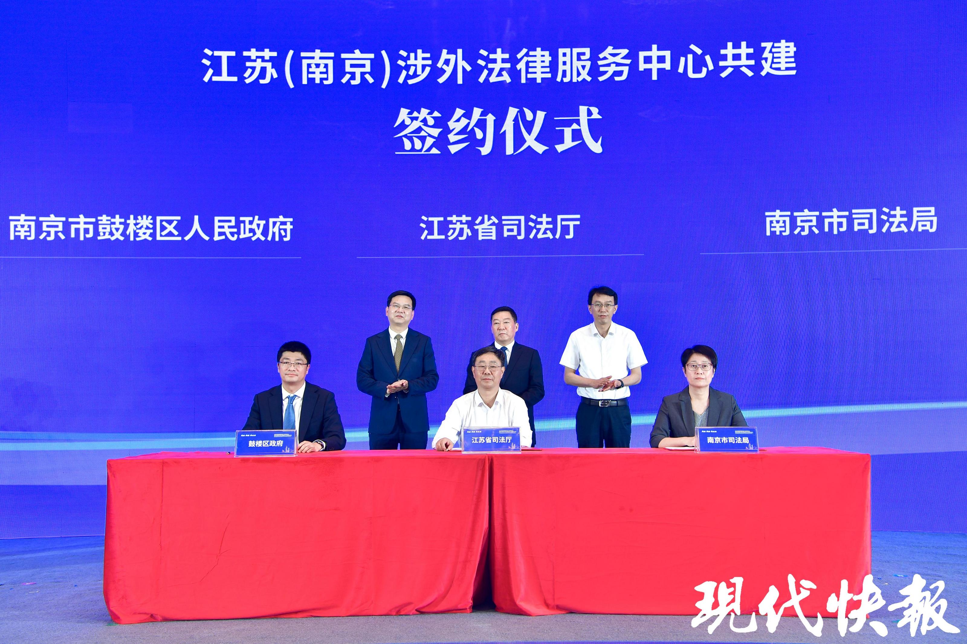 活动现场,江苏省司法厅、南京市司法局和鼓楼区政府三方签约共建江苏(南京)涉外法律服务中心。该中心坐落于鼓楼区虎踞北路181号金源大厦,由南京市鼓楼高科集团运营。