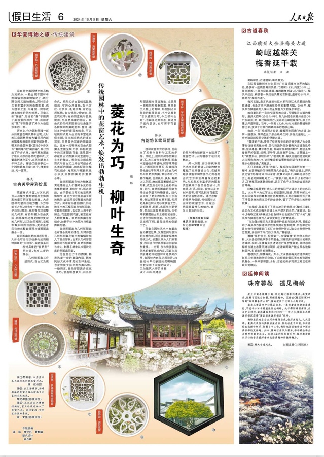 花窗是中国园林中极具魅力的部分,一般出现于园林中的隔墙或游廊侧墙之上,既分隔空间又透映景色,同时自身又有丰富多彩的造型图案,成为园中之景,与墙面一同形成虚实相生的艺术效果。花窗又称“漏窗”,后者的“漏”字强调了其透景作用的一面,而前者的“花”字则强调了其作为造型效果的一面。