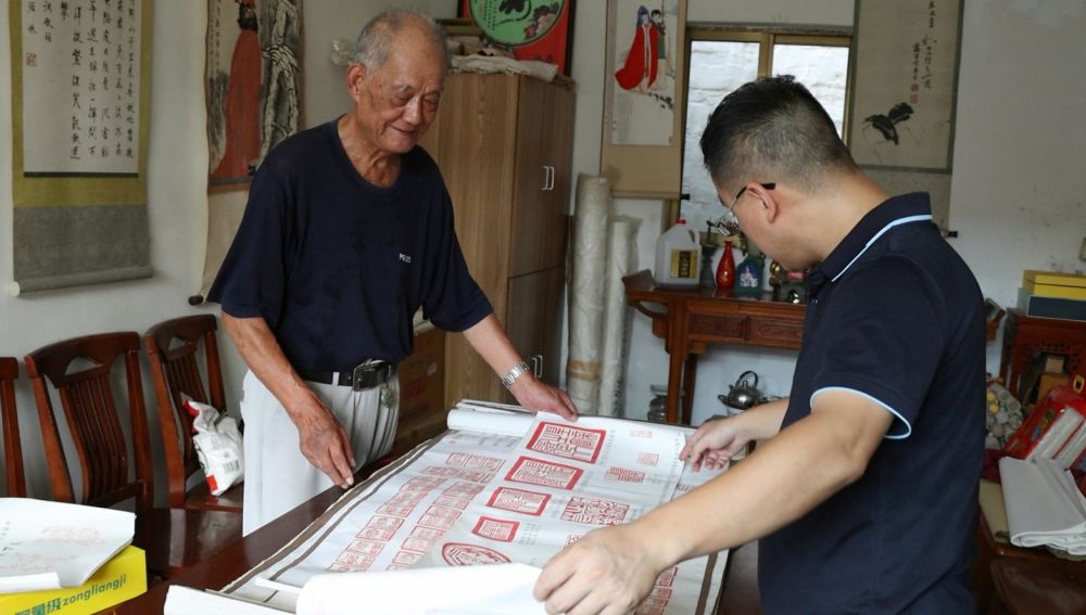 丁溪的古,古在家家户户门前百年如一的古桥、古井、古街,置身其中,仿佛时间都在此停驻。而在草堰的另一处古街——竹溪盐街,传统文化的精致在这里则纤毫毕现。竹溪盐街本着“仿古像古、修旧如旧”,马头墙、红灯笼、雕花窗,构成了徽派古建筑风格的意象,沿街有理发店、面馆、熟食店、文玩书画等林林总总。在这里,记者遇到了一位高人——刘鸿宾老人,他爱好书画,业余喜木刻。曾历时2年完成了《草堰木刻》,属于盐城市级非物质文化遗产,他也被誉为“中国木刻水浒第一人”。