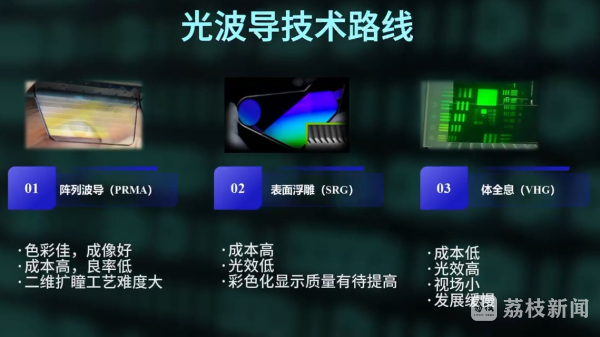 简单来说,SRG技术是在材料表面刻出微小的周期性结构,而PVG则是通过全息干涉,在材料内部形成折射率变化的周期性分布。两者都靠光栅衍射和全反射来成像,但PVG在光能利用率和成本控制上更胜一筹。