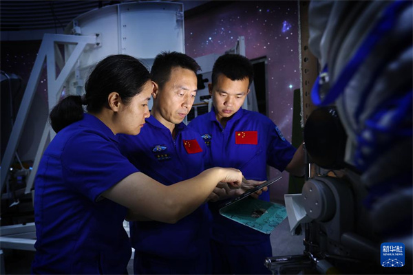 神舟十九号航天员乘组进行核心舱操作训练(2024年6月17日摄)。新华社发(徐部摄)