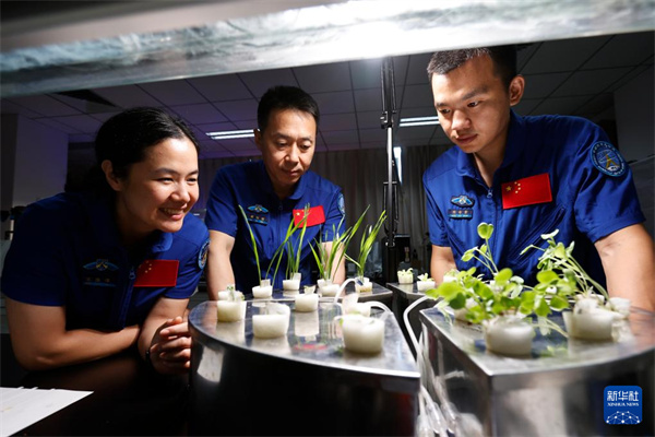 神舟十九号航天员乘组进行植物培养训练(2024年8月27日摄)。新华社发(徐部摄)
