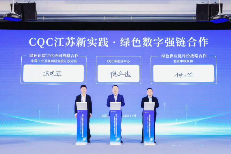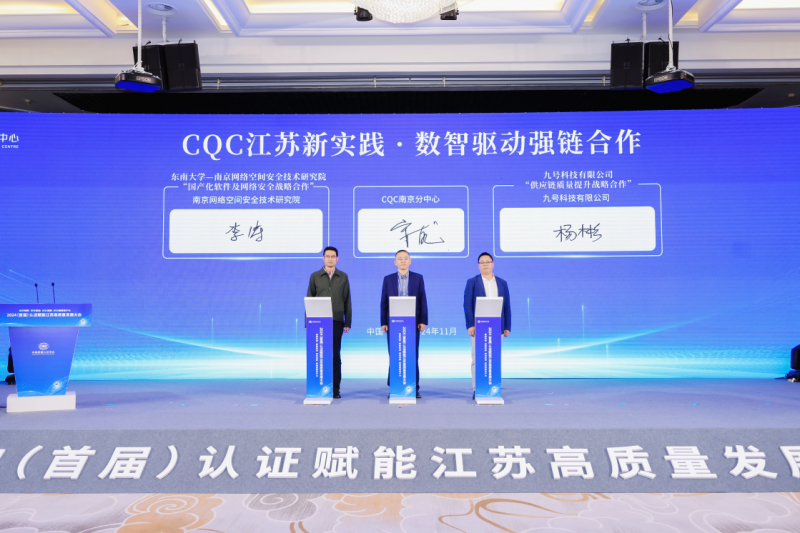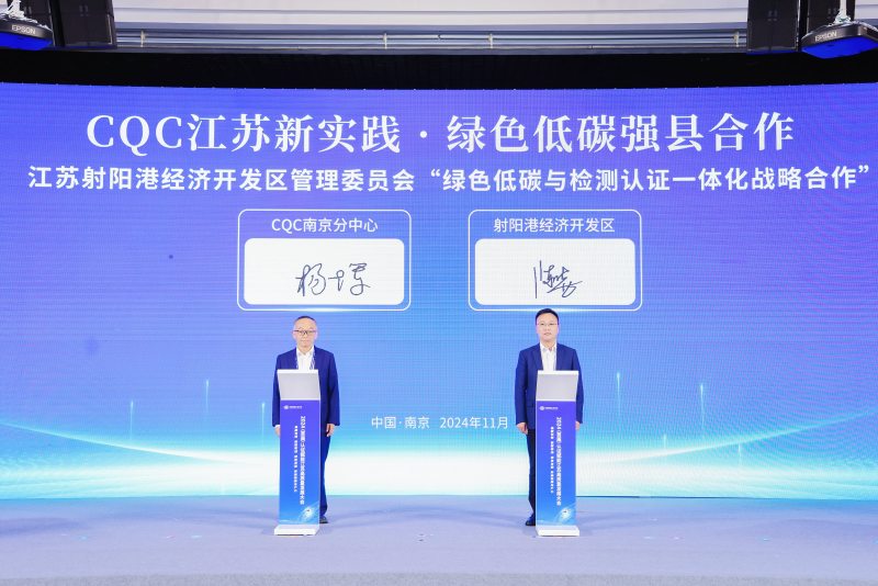 在绿色低碳领域,中国质量认证中心南京分中心还积极践行质量认证强企强链强县战略,在会上与江苏射阳港经济开发区管理委员会达成“绿色低碳与检测认证一体化合作”;与国网江苏电动达成“高质量充电合作”;与中能建江苏达成“电站检测与评价合作”;与中铁十四局江苏达成“电站检测与评价合作”;与特嗨氢能达成“氢能装备全产业链质量服务合作”。