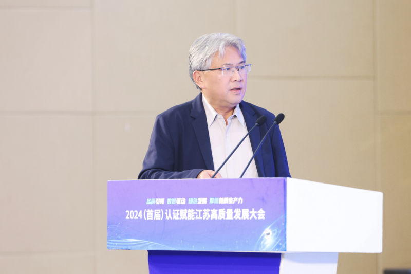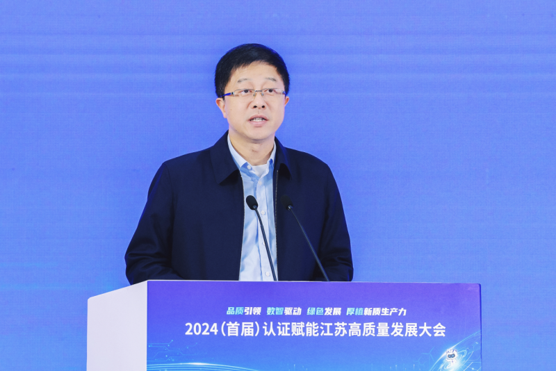 11月12日,2024(首届)认证赋能江苏高质量发展大会在南京召开。此次大会以“品质引领 数智驱动 绿色发展 厚植新质生产力”为主题,由江苏省发展和改革委员会、江苏省工业和信息化厅、江苏省生态环境厅、江苏省市场监督管理局指导,中国质量认证中心主办,中国质量认证中心南京分中心承办。与会嘉宾从政策引领、学术研讨、产业落地等角度出发,探讨认证对于新质生产力培育的推动作用,以及对企业、产业、区域高质量发展的积极影响。