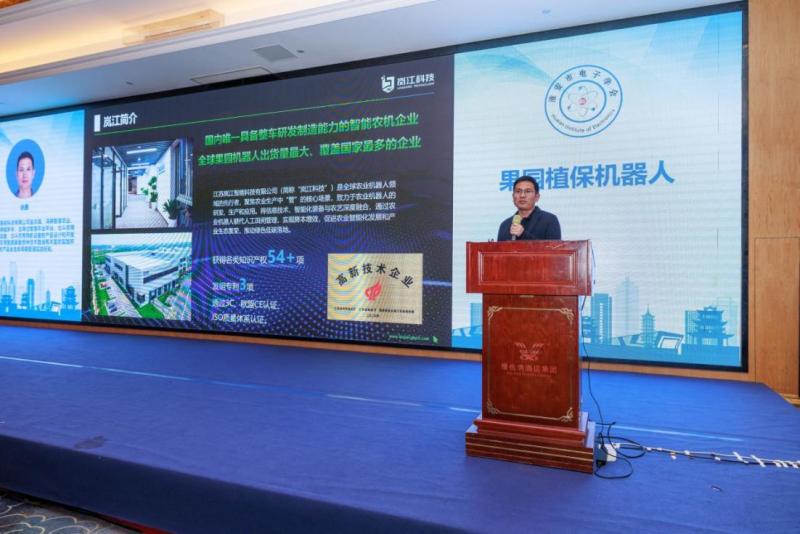 江苏省岚江智能科技有限公司副总裁徐鑫作题为《果园植保机器人》的技术报告,主要内容包括产品创新与集成、技术优势、智能化与无人化、智能补给平台等,展示了岚江科技在果园植保机器人领域的技术创新和市场应用,以及公司对未来农业智能化发展的愿景和规划。