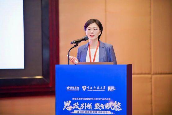 云南省高校课程思政教育联盟理事长单位昆明理工大学教务处副处长秦雅琴在研讨会上表示,联盟自成立以来,成员数量增至95所,品牌影响力逐步提升。她分享了联盟在课程思政领域的积极探索与成效,以及部分高校在数智化转型方面的前沿尝试,期望此次研讨会能为云南高校教师指明数智赋能课程思政的方向,推动云南省高校课程思政建设高质量发展。