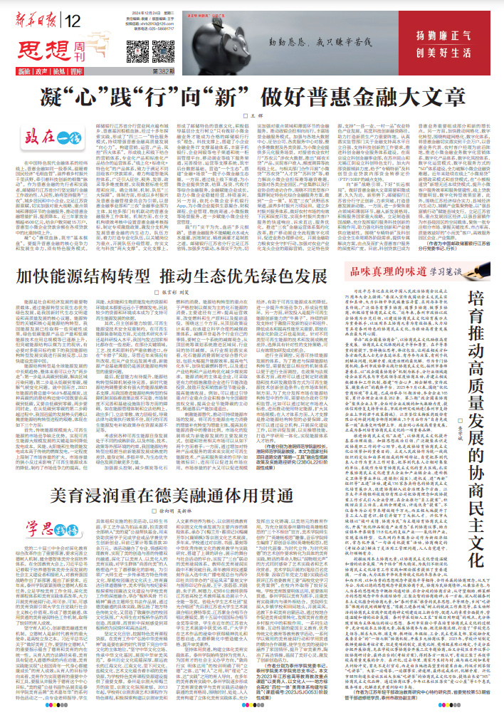 ——《加快能源结构转型 推动生态优先绿色发展》张言彩 刘笑(作者分别为淮阴师范学院副校长,淮阴师范学院副教授。本文为国家社科项目道路交通“策略—工具”融合型低碳政策及实施路径研究〈23BGL226〉阶段性成果)
