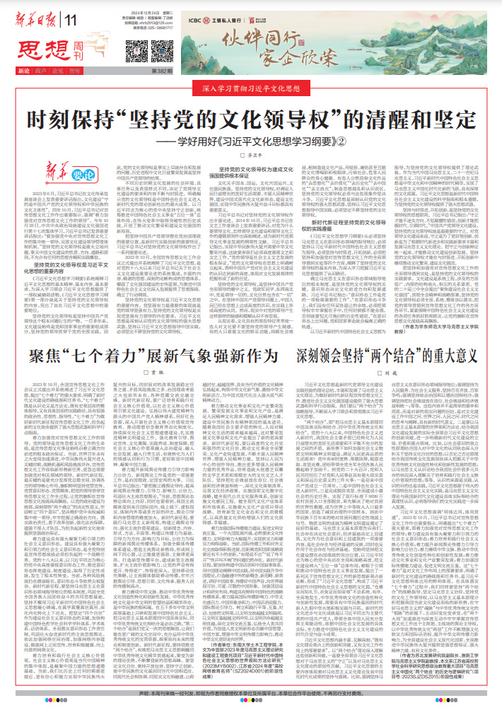 ——《时刻保持“坚持党的文化领导权”的清醒和坚定—— 学好用好<习近平文化思想学习纲要>②》齐卫平(作者为华东师范大学马克思主义学院教授)