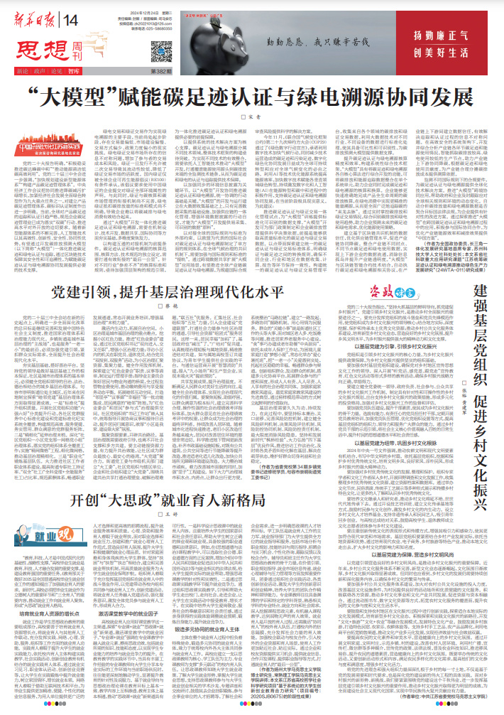 ——《“大模型”赋能碳足迹认证与绿电溯源协同发展》宋 青(作者为全国政协委员,长三角一体化发展研究基地首席专家,苏州科技大学人文社科处处长;本文系省社科联重大应用研究课题“江苏统筹碳足迹认证和绿电溯源推动绿色生产力发展研究”〈24WTA-011〉研究成果)