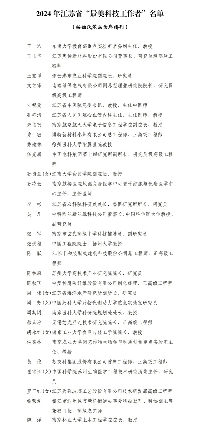 2月25日,2024年江苏省“最美科技工作者”表彰仪式在南京举行,30位科技精英获此殊荣。他们怀揣科技报国之心,在建设高水平科技强省的征程中,探索前沿科技、投身重大工程、推动产业创新,展现出硬核实力与担当作为,为我省“成为发展新质生产力的重要阵地”贡献科技力量。