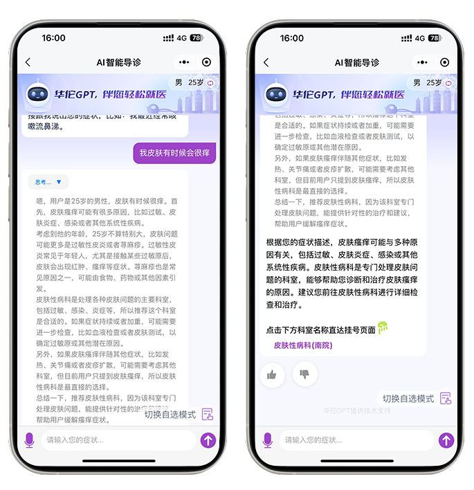 该医院大数据中心处长刘丽表示,这正是此次升级的亮点。“我们引入了思维链技术,模拟医生问诊逻辑,详细解析病情分析逻辑,让患者清楚‘为什么挂这个科’。”