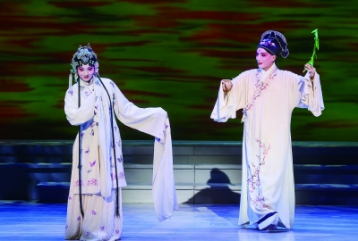 昨天,校园青春版昆剧《牡丹亭》迎来首演。图为高校学生所饰演的杜丽娘与柳梦梅。 通讯员 吴涵玉 南京日报/紫金山新闻记者 徐琦 摄