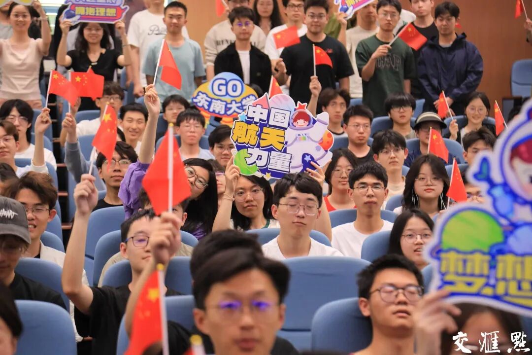 4月30日下午,东南大学阶梯教室内,三百余名师生屏息凝望直播屏幕,期待神舟十九号载人飞船成功返回。其中,神十九乘组中的航天员王浩泽是东南大学校友。为了迎接“宇宙学姐”回家,东大学弟学妹们早早守候在教室,庆祝学姐凯旋。