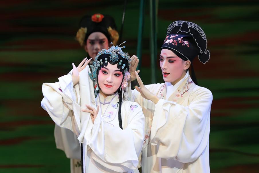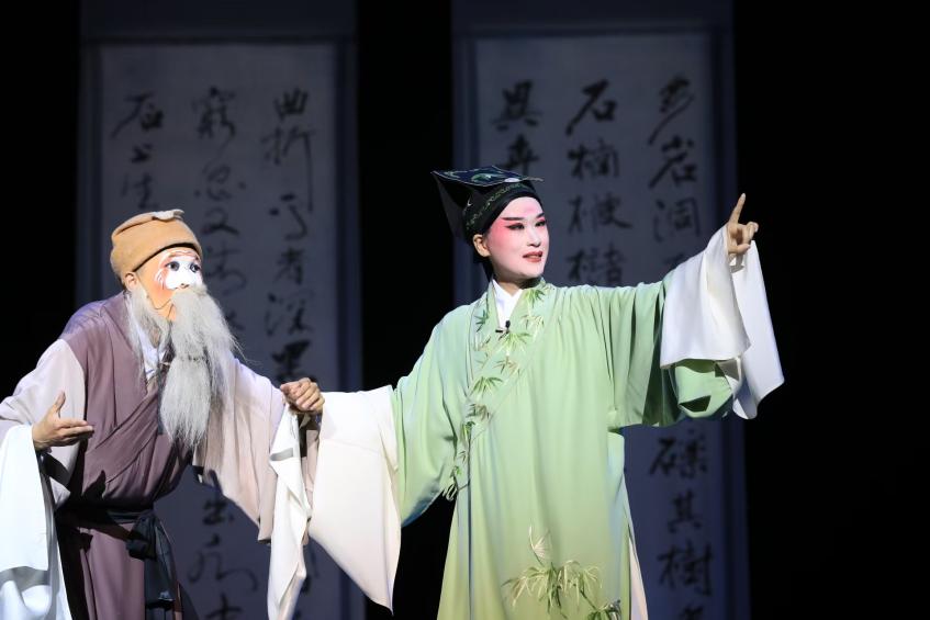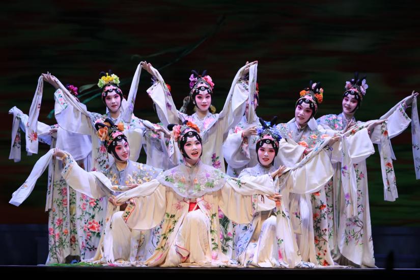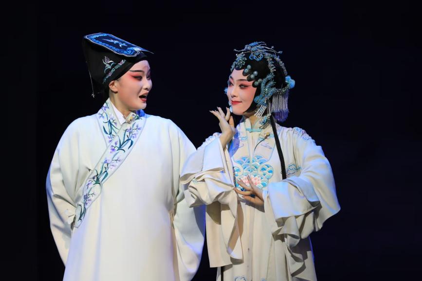 东南大学2021级本科生范宇鹏,在折子戏《回生》中饰演柳梦梅,他将此次经历视为“一场如梦似幻的奇妙旅程”,深刻领悟到戏曲表演“从人物内心出发”的精妙之处。来自西北工业大学的任研佳参演花神,在她看来,花神既是杜柳情缘的守护者,也是生死轮回的叙事者,于数字时代再现古典意象,是对非遗传承的探索。琵琶演奏者、苏州大学张早早在首演前,心情紧张又激动。过去八个多月的排练时光里,她在课堂上从老师们言传身教中体悟昆曲韵味,课后对着录音反复打磨弹奏技法。