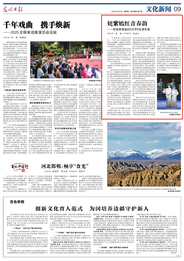 东南大学党委书记左惟说:“校园青春版《牡丹亭》实现了美育从课堂学习到舞台实践的全面衔接。”校园青春版《牡丹亭》让青年学子在演绎经典中触摸文化根脉,于传承创新间涵养精神品格,成为高校培育时代新人的生动实践。
