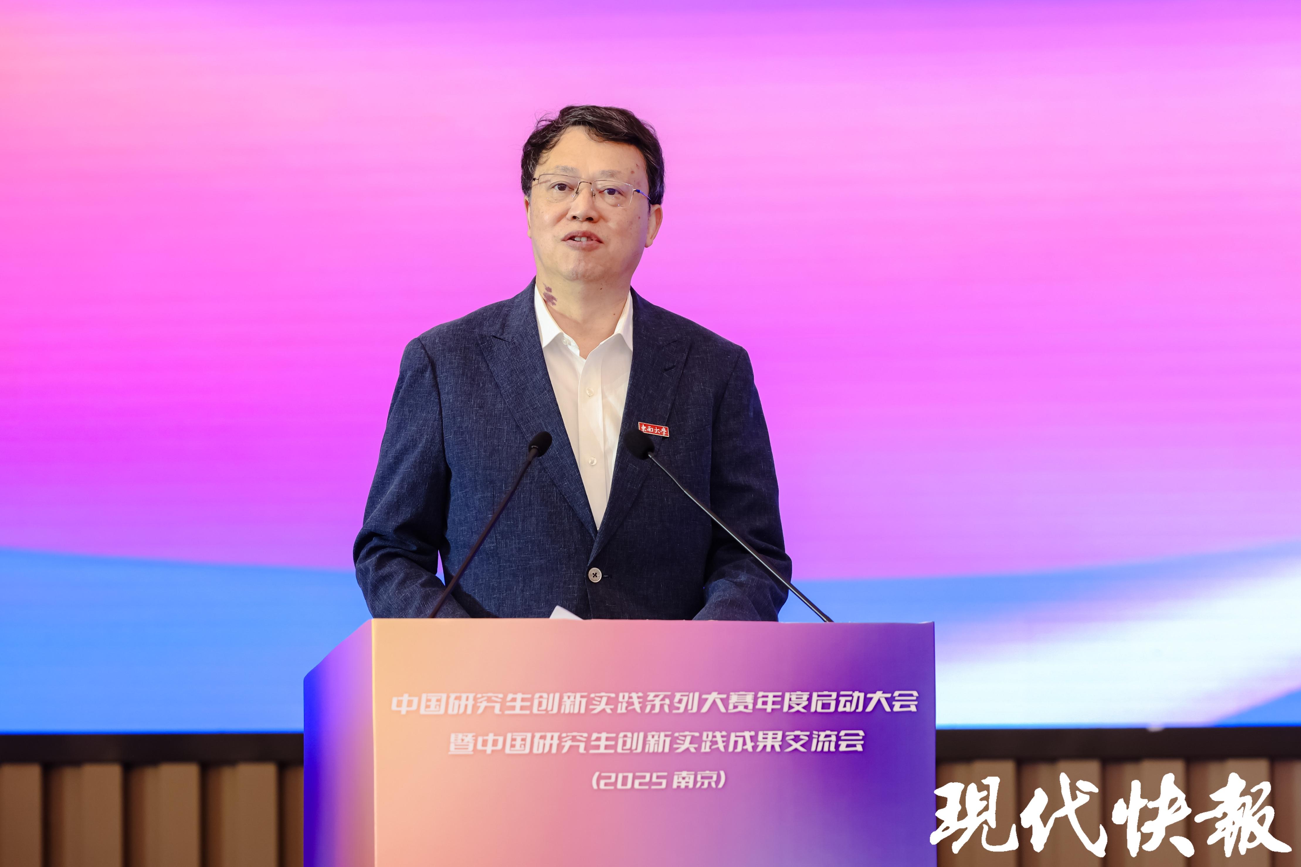 实验室里的前沿技术走向生产线,研究生创客与产业大咖同台,一场关于学术交流、实践创新、产研融合的“融合行动”正在南京上演。5月16日,2025年中国研究生创新实践系列大赛年度启动大会在东南大学拉开帷幕,600余名高校师生、企业代表和地方政府负责人齐聚南京,共同见证了一场教育链、产业链、创新链深度融合的“化学反应”。现场,中国研究生创新实践成果孵化基地将在南京江宁落地。