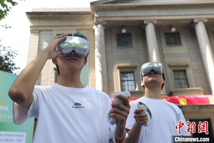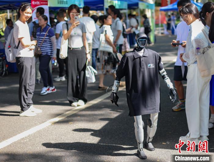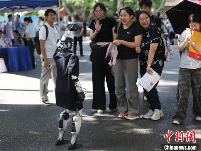 6月16日,“遇见东南 筑梦未来”2025年东南大学校园开放日暨大型高招咨询会在该校四牌楼校区举办,吸引了众多高考考生和他们的家长前来,一站式了解心仪院校的最新招生政策、专业设置、人才培养等方面信息。东南大学作为国内高层次人才培育沃土和推动科技创新、服务国家战略的重要引擎,在123年发展历程中,培育出包括230多位两院院士在内的40多万优秀人才。图为学生与展示的机器人互动。中新社记者 泱波 摄
