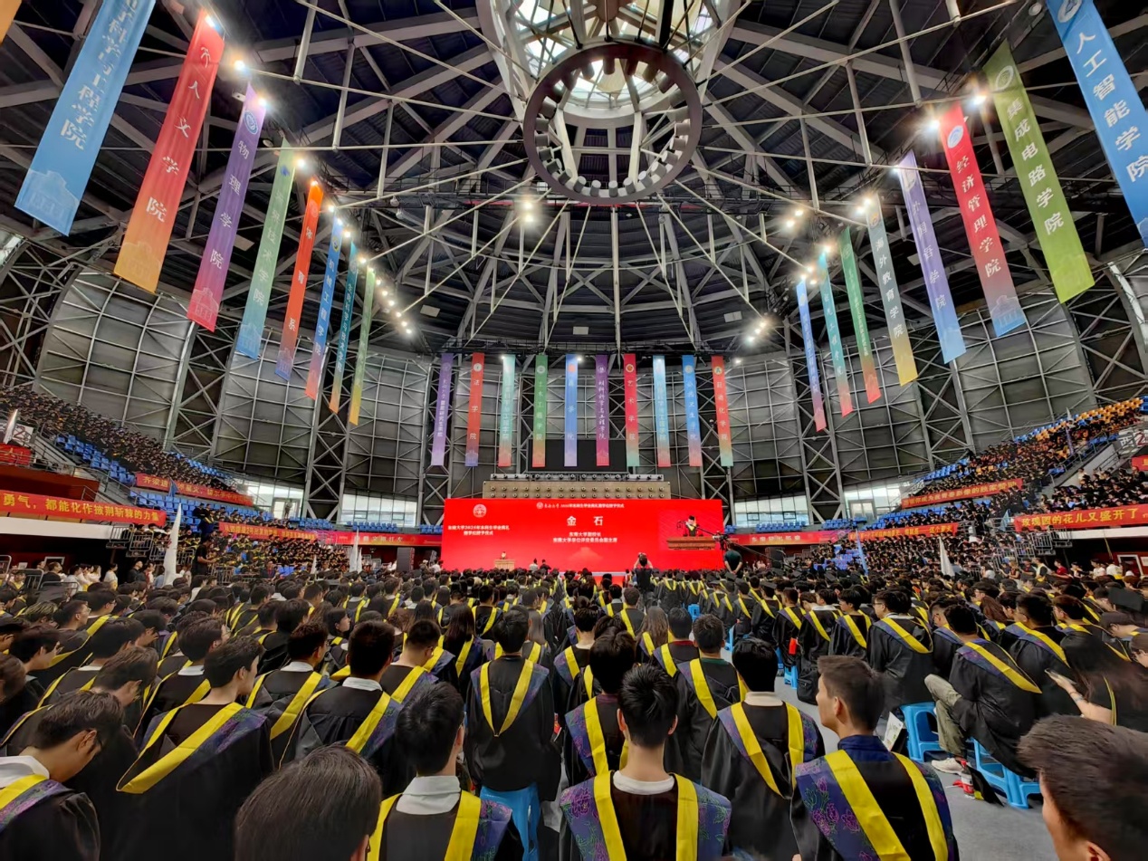 交汇点讯 “东大人的‘至善’,是永不停息的超越。”6月19日上午,东南大学2025年本科生毕业典礼暨学位授予仪式在九龙湖校区体育馆举行。典礼上,中国工程院院士、东南大学校长孙友宏以《至善绘青春 砥砺启新程》为题寄语2025届本科毕业生。他回顾了同学们在东大拔节生长、激扬青春、见证时代跃迁的求学奋斗历程,勉励同学们牢记嘱托,不负韶华,为强国建设、民族复兴伟业贡献力量。