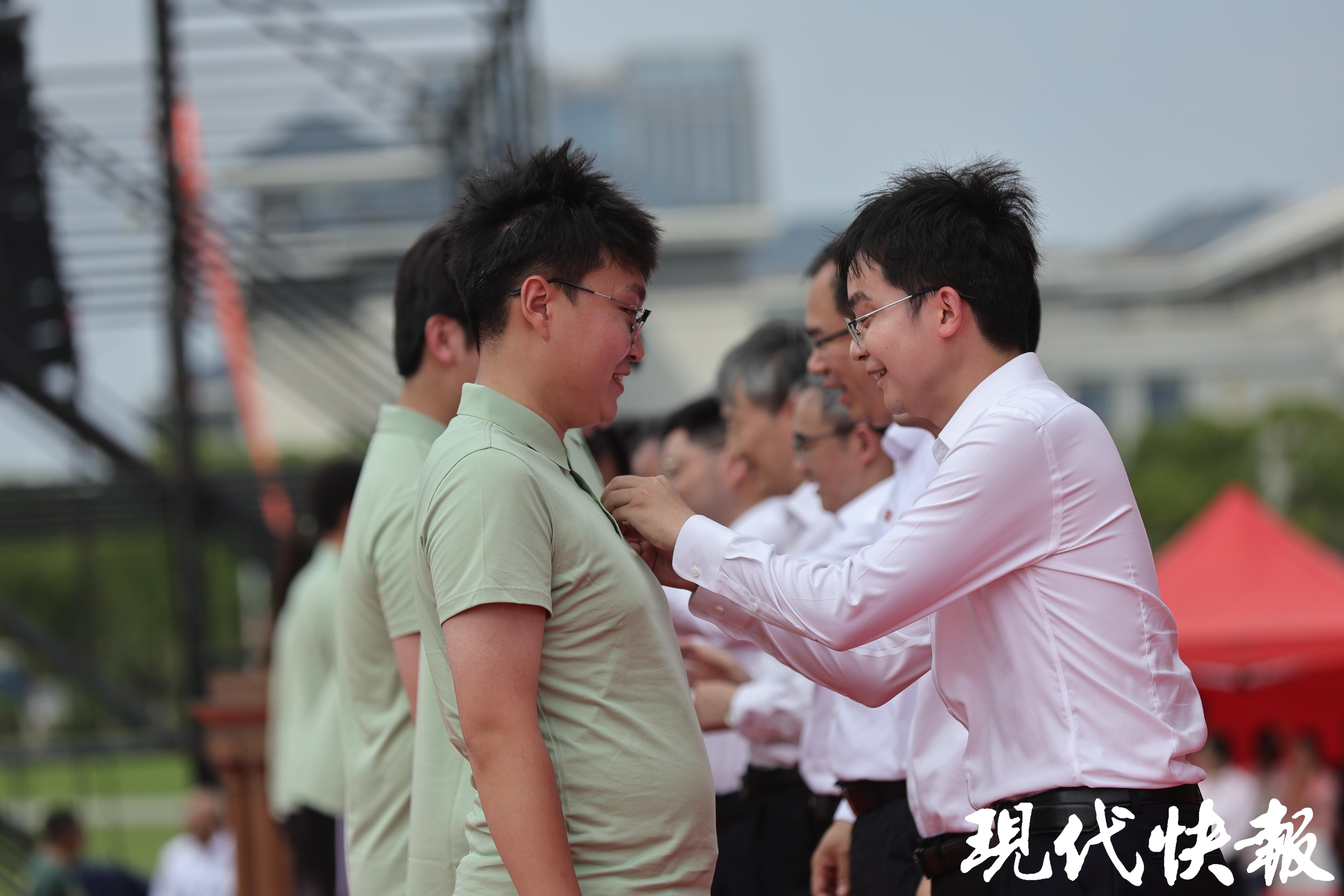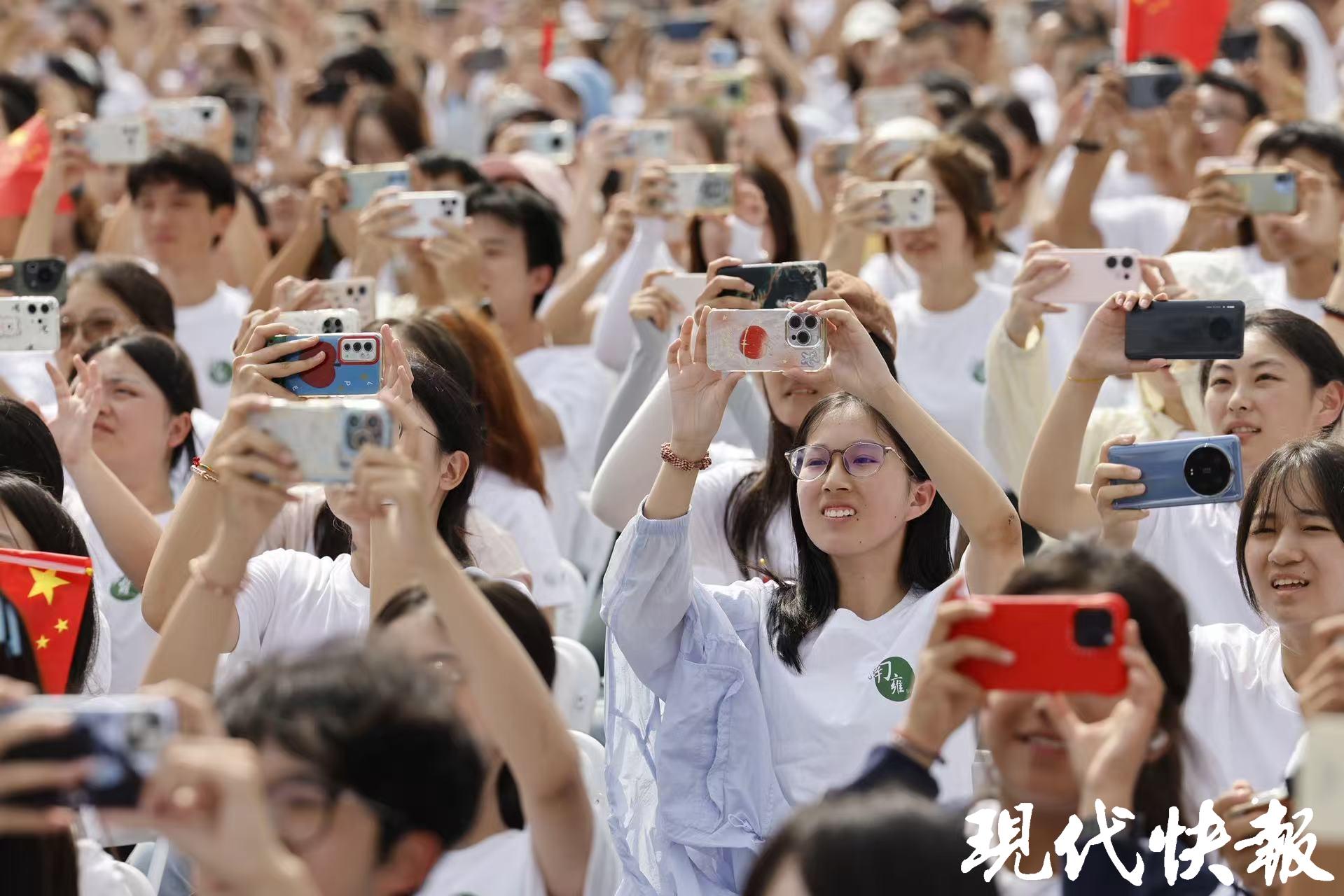 典礼最后,伴随着《我爱你东南》的旋律响起,万名新生全体起立,郑重佩戴起象征着“东大人”新身份的校徽,并进行集体宣誓,与东南大学这座百廿学府缔结永恒的精神契约。全场齐唱《东南大学校歌》,阳光映衬着一张张青春自信的笑脸,他们在这里正式开启人生的崭新征程。
