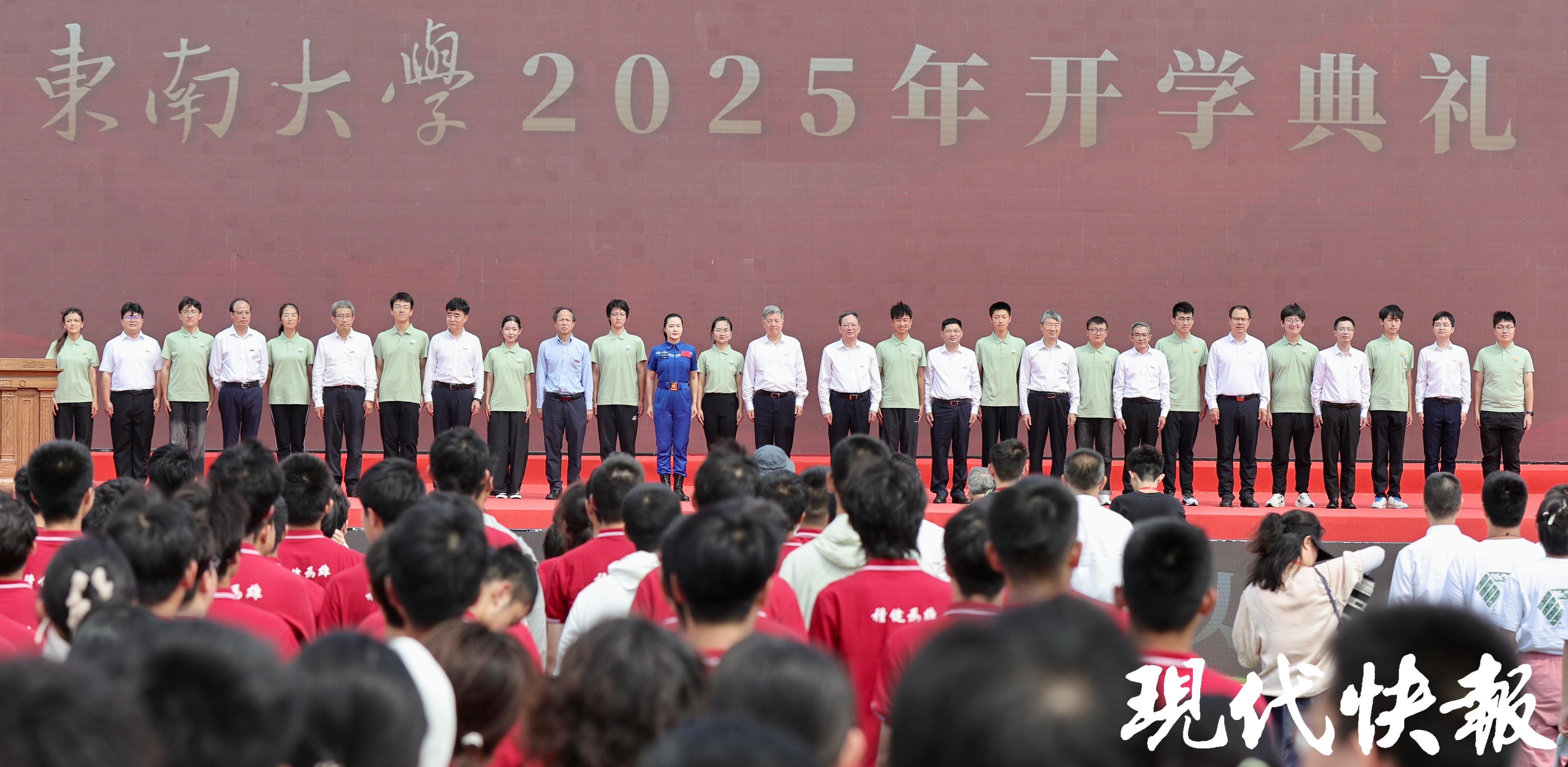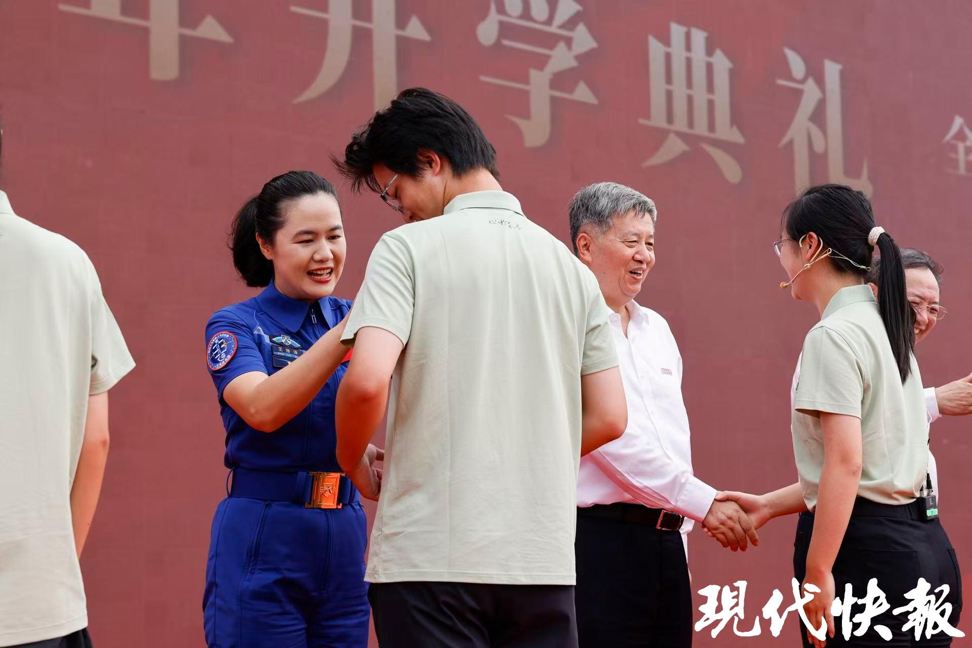 9月19日,东南大学举行2025年开学典礼,万余名本硕博新生会聚在开阔的大草坪上,迎来承载梦想与期许的时刻。校友代表、中国首位女性航天飞行工程师、神舟十九号载人飞行任务航天员王浩泽来到现场,向学弟学妹们分享太空经历。