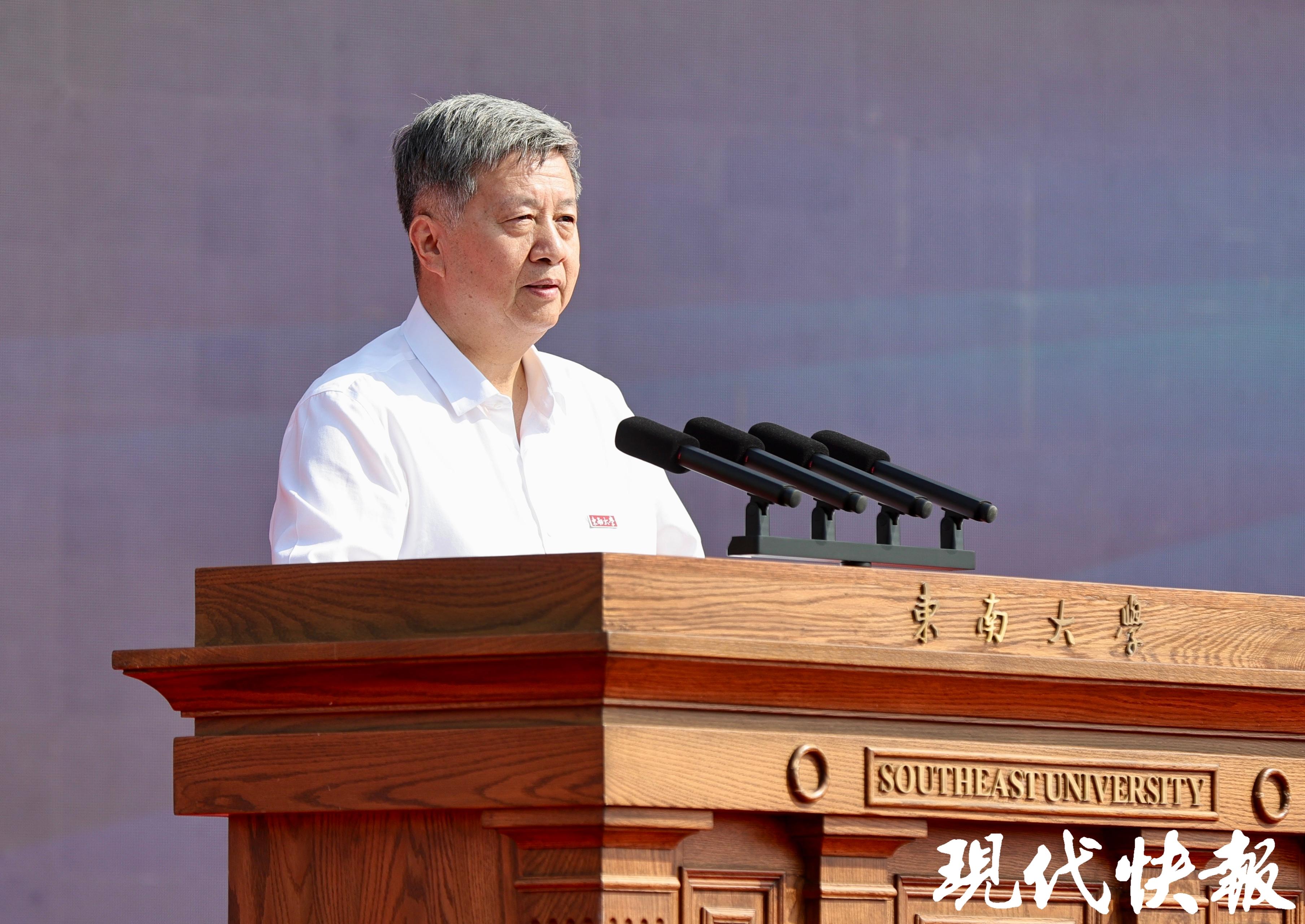 东南大学校长孙友宏做题为《砥砺成才 学以报国——做新时代的“四有”东大人》的讲话。他说,你们是新时代的“新青年”,是东大的“新种子”,同学们圆梦东大是双方精神气质的高度契合,是使命与梦想的双向奔赴。