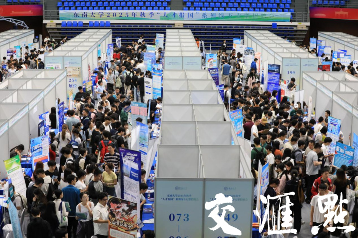 “硕士30w+,博士40w+”“三猫两狗,带薪撸宠”“研发投入累计16亿元”……9月25日,东南大学2025年秋季“人才报国”大型线下招聘会人流如织。560余家用人单位招才引才“各显神通”,4.8万余个岗位虚位以待。作为东南大学今年规模最大的招聘会,这里也成为观察就业市场风向标的窗口。