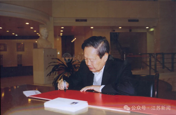 讲座结束后,杨振宁专程前往校园中央的吴健雄纪念馆——这是我国首个海外华人科学家纪念馆。他仔细端详每一件展品,睹物思人间感慨万千,他挥笔题词:“吴健雄是当代大实验物理学家,东南大学为她建造的纪念馆非常好。”表达了对这位杰出女性的崇高敬意与深切缅怀。