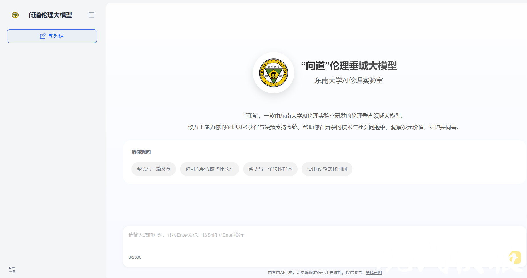 现代快报讯(通讯员 孙艳 吴涵玉 记者 李楠)11月12日,全球首个系统级伦理垂域大模型“问道”在东南大学正式发布,标志着我国在AI伦理治理领域实现从“被动合规”向“主动共建”的重要转变。该大模型致力于成为用户的伦理思考伙伴与决策支持系统,帮助科研机构、科技企业、伦理审查机构、政策制定者以及公众在复杂的技术与社会问题中,洞察多元价值。现代快报记者了解到,目前该大模型免费向用户开放。
