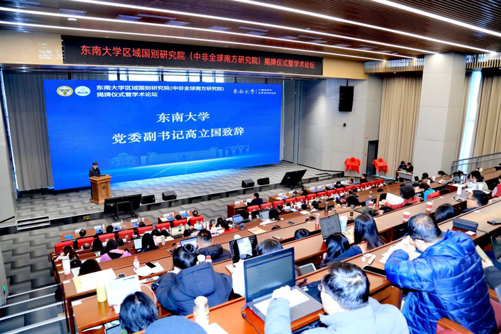 交汇点讯 12月27日,东南大学区域国别研究院(中非全球南方研究院)揭牌仪式暨学术论坛在九龙湖校区举行。本次活动由东南大学区域国别研究院与外国语学院联合主办,来自全国42所高校、科研院所及政府部门、出版单位的专家学者和领导,与东南大学师生代表齐聚金陵,共同探讨区域国别学学科高质量发展与推进全球南方合作新路径。开幕式由东南大学区域国别研究院执行院长王启龙教授主持。
