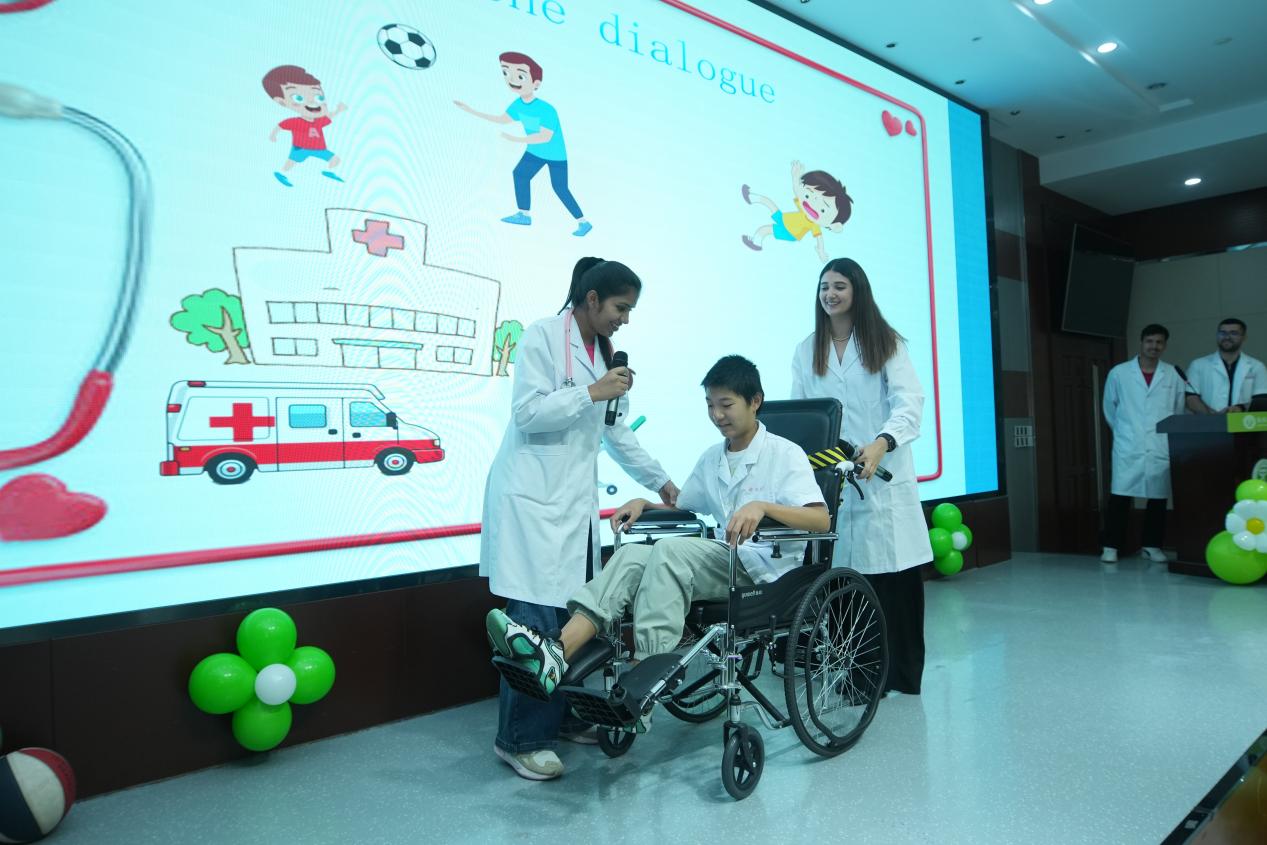 午餐后,孩子们在学术报告厅展开团队小游戏,进一步了解彼此,增进孩子们之间的友谊与合作精神。随后开设了“高黎贡的原住民”等动物医学趣味拓展课程,人工智能与医学、情景式医学英语启蒙等课程邀请”小医生”们互动参与,进一步拓展了知识视野。