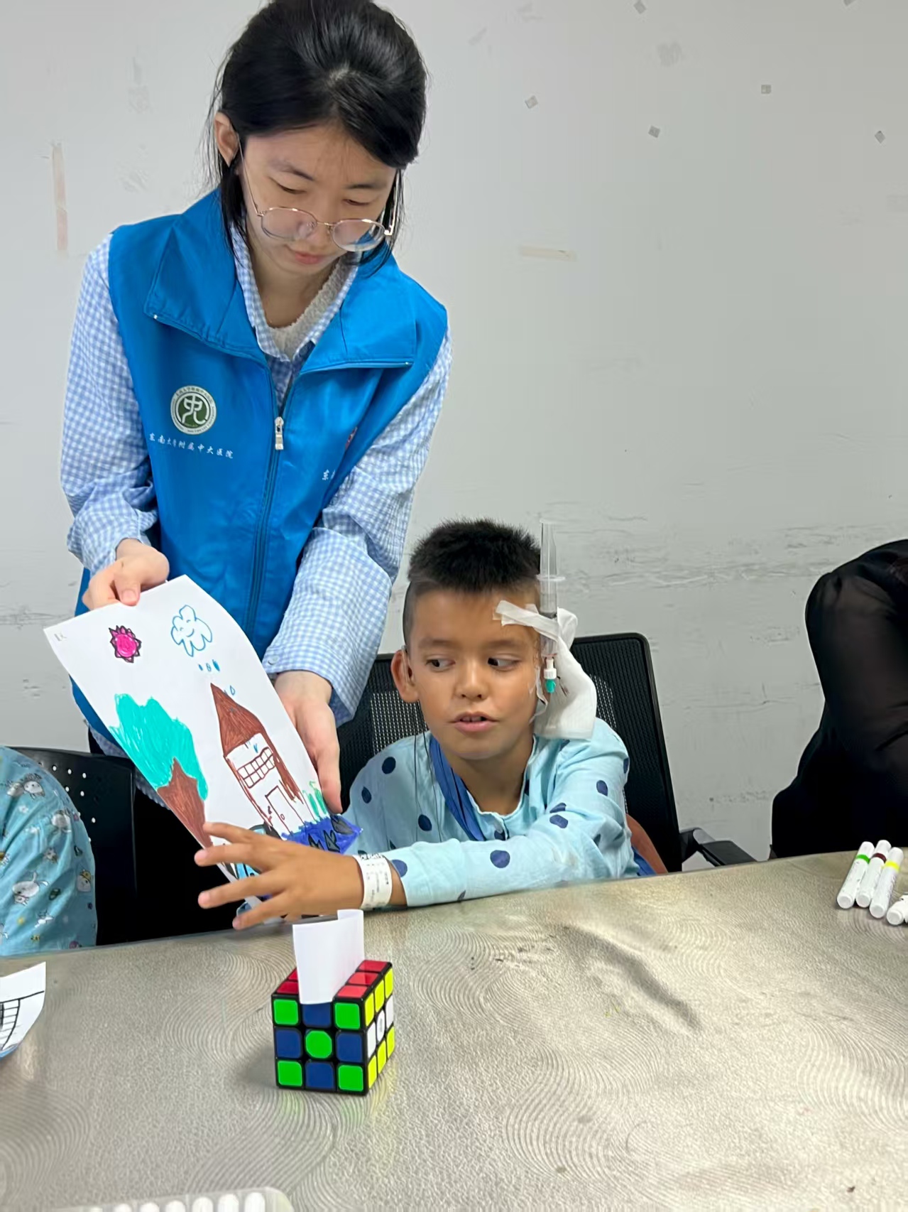 这场活动,凝聚着太多人的用心:以王磊主任、张倩婷护士长、吕影护士、章万幸医生为代表的医护人员,用专业与温柔守护着孩子们的健康;“志行青听”团队的志愿者们,用创意与热情点亮了孩子们的暑期;家长们则用陪伴与信任,成为孩子最坚实的后盾。他们共同编织的温暖,将成为孩子们治疗路上最珍贵的记忆。