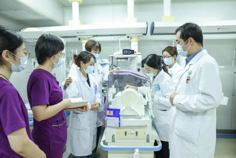 新生儿监护室内,医护团队正在为早产宝宝评估