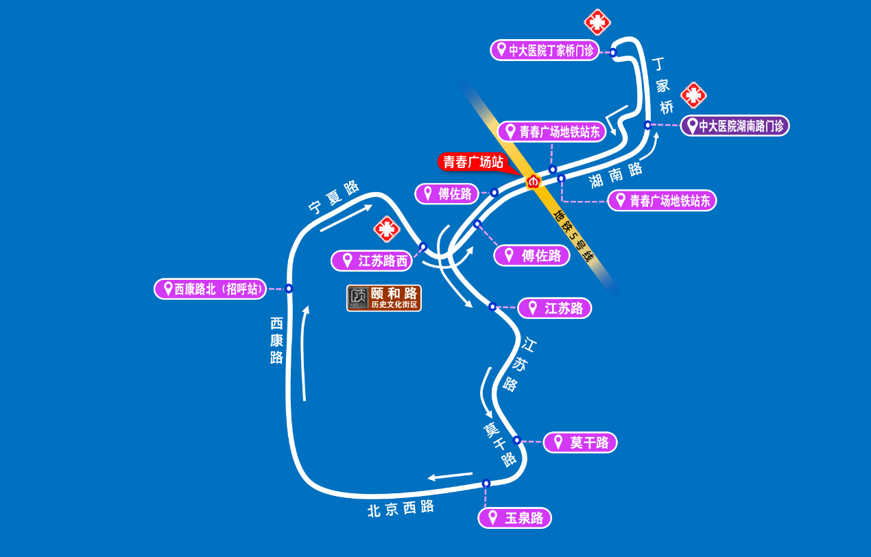 值得一提的是,中大医院第二条就医公交专线B27路在原有B26路基础上全面升级,实现了从“院内接驳”到“片区覆盖”。线路采用单循环运营模式,全程设置11个停靠站点,沿途停靠:中大医院湖南路门诊(同B26路上下客同站)、中大医院丁家桥门诊(同B26路医院内部)、青春广场地铁站东(路北侧)、傅佐路(路北侧)、江苏路(路西侧)、莫干路(路西侧)、玉泉路(路北侧)、西康路北[招呼站](路东侧)、江苏路西(路西侧)、傅佐路(路南侧)、青春广场地铁站东(路南侧)。