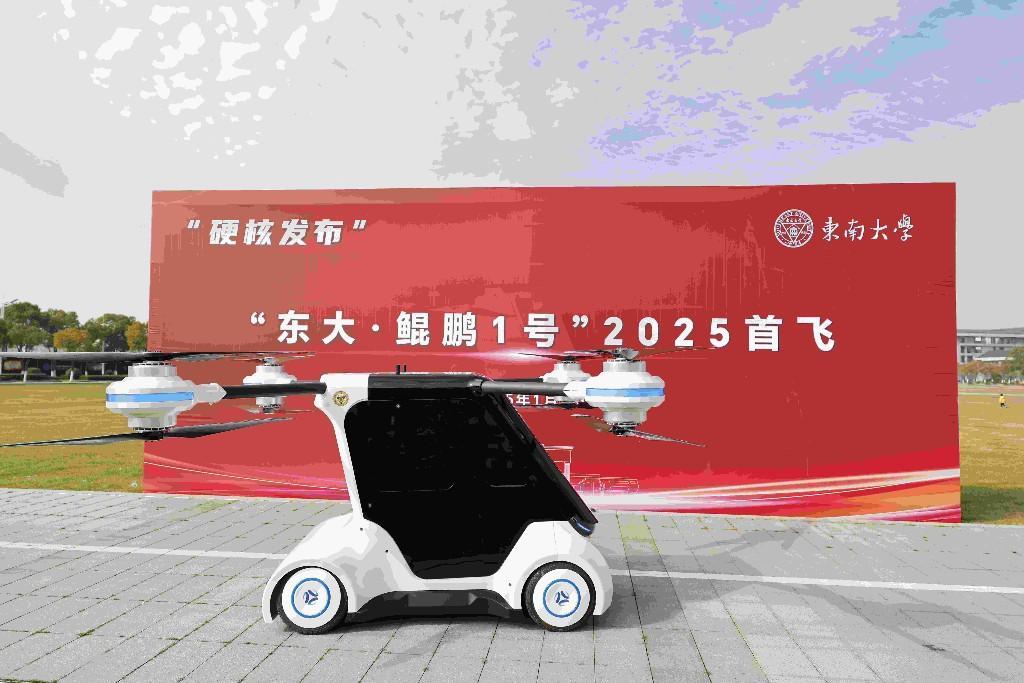 2025年1月1日,东南大学发布了由其科研团队自主研发的国内首辆分布式电驱动飞行汽车——“东大·鲲鹏1号”。该飞行汽车是国内首辆全轮转向全轮驱动、四轴八桨构型飞行汽车,也是江苏省首辆陆空一体飞行汽车。