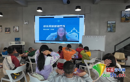 东南大学志愿者在线教授云南省南华县的孩子们学习“耳保健操”。东南大学研支团供图