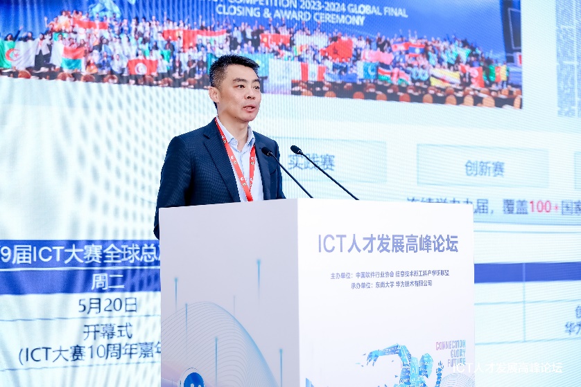 在第九届华为ICT大赛中国总决赛期间,由中国软件行业协会、信息技术新工科产学研联盟主办,东南大学、华为联合承办的ICT人才发展高峰论坛在东南大学隆重举行。论坛聚焦人工智能时代ICT人才培养新路径、产教融合创新机制、AI时代课程体系改革等核心议题,吸引了来自政府、教育界、产业界及高校的600余位专家代表参会,共同探讨数字人才培养的未来方向,并达成重要行业共识。