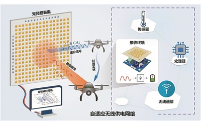 实现无人机“边飞边充电”,精准定位移动中的无人机,并能高效精准地传递能量是关键。简单来说,基于电磁超表面的辐射式无线能量传输与接收技术宛如“智慧大脑”,能通过目标感知和环境交互,智能化调整电磁波传输参数,包括对电磁波不同幅度、相位、辐射方向的灵活控制,并根据周围环境变化及设备实时需求,提高无线能量传输效率,精准且高效地为设备输送能量,最终实现类似于雷达的波束扫描、跟踪和探测效果。