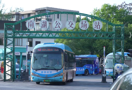 4月20日,13路公交车从南湖公交场站缓缓驶出。