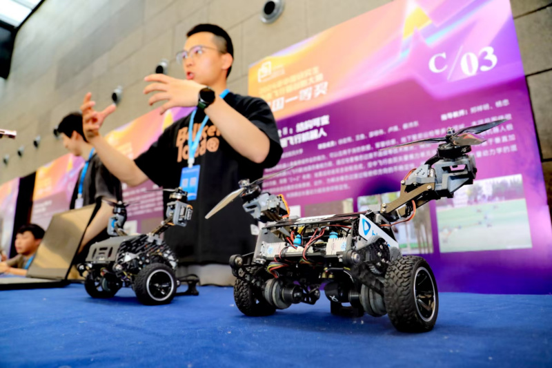 可以“秒变”三架独立飞机的无人飞行器、仿刺鲀可吸水变大的微针机器人……5月16日,2025年中国研究生创新实践系列大赛年度启动大会暨中国研究生创新实践成果交流会在南京举办,往年中国研究生创新实践系列大赛中的120余项优秀获奖作品惊艳亮相。现场600余位高校师生、企业代表和地方政府负责人共同见证了一场教育链、产业链、创新链深度融合的“化学反应”。